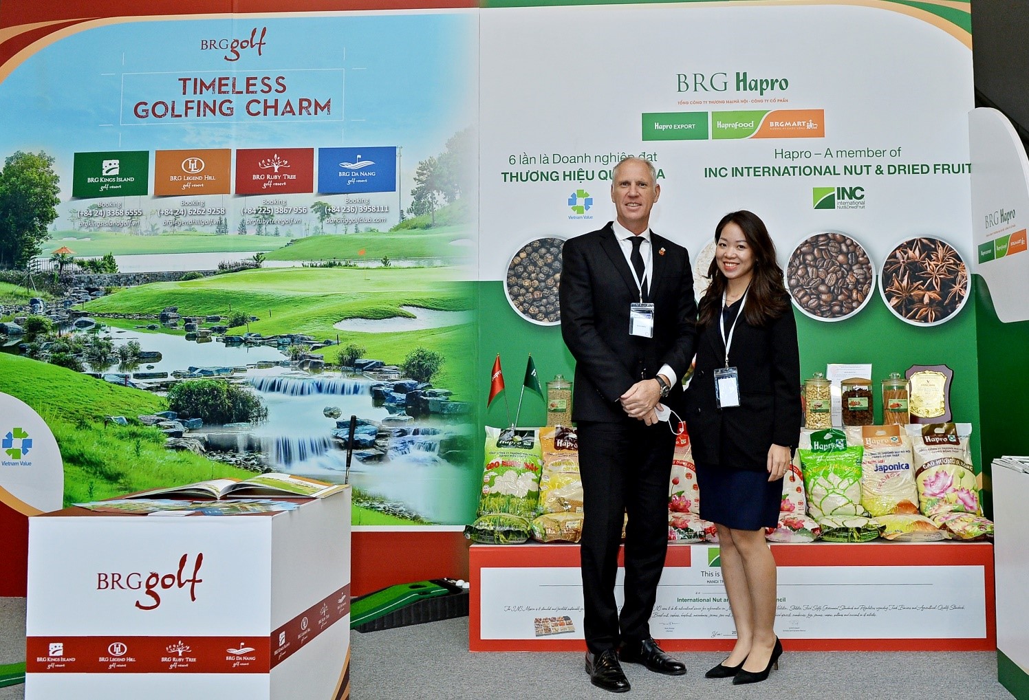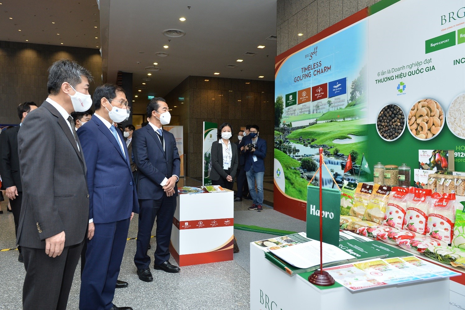 Cùng góp mặt tại Hội nghị còn có Tổng Công ty Thương mại Hà Nội (Hapro) – đơn vị xuất nhập khẩu chủ lực thuộc Tập đoàn BRG. Với 6 lần liên tiếp được vinh danh là Thương hiệu Quốc gia, Hapro đã nỗ lực bền bỉ trong việc xây dựng và phát triển các sản phẩm nông sản thế mạnh của Việt Nam như hàng nông sản thực phẩm gồm gạo, hạt điều, hạt tiêu, cà phê; hàng gia vị; thực phẩm chế biến … nhằm tiếp cận không chỉ thị trường trong nước mà còn xuất khẩu đi gần 80 quốc gia và vùng lãnh thổ với kim ngạch xuất khẩu hàng năm đạt hàng trăm triệu USD. Bên cạnh những thành công trong hoạt động xuất nhập khẩu, thời gian qua, chuỗi của hàng mang thương hiệu Haprofood/BRGMart đã và đang phát triển mạnh mẽ tại Hà Nội và một số tỉnh phía Bắc. Nhân dịp này, Hapro sẽ dành nhiều chương trình khuyến mại hấp dẫn cho khách hàng thăm quan, mua sắm gian hàng.