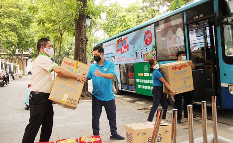 Là một doanh nghiệp bán lẻ lớn, trong tháng 8-2021, Tổng công ty Hapro đã phối hợp với Liên đoàn Lao động thành phố Hà Nội tổ chức “Xe buýt siêu thị 0 đồng” tới Khu công nghiệp thực phẩm Hapro (huyện Gia Lâm) để trao 208 suất quà gồm nhiều loại nhu yếu phẩm tặng các gia đình công nhân có hoàn cảnh khó khăn.