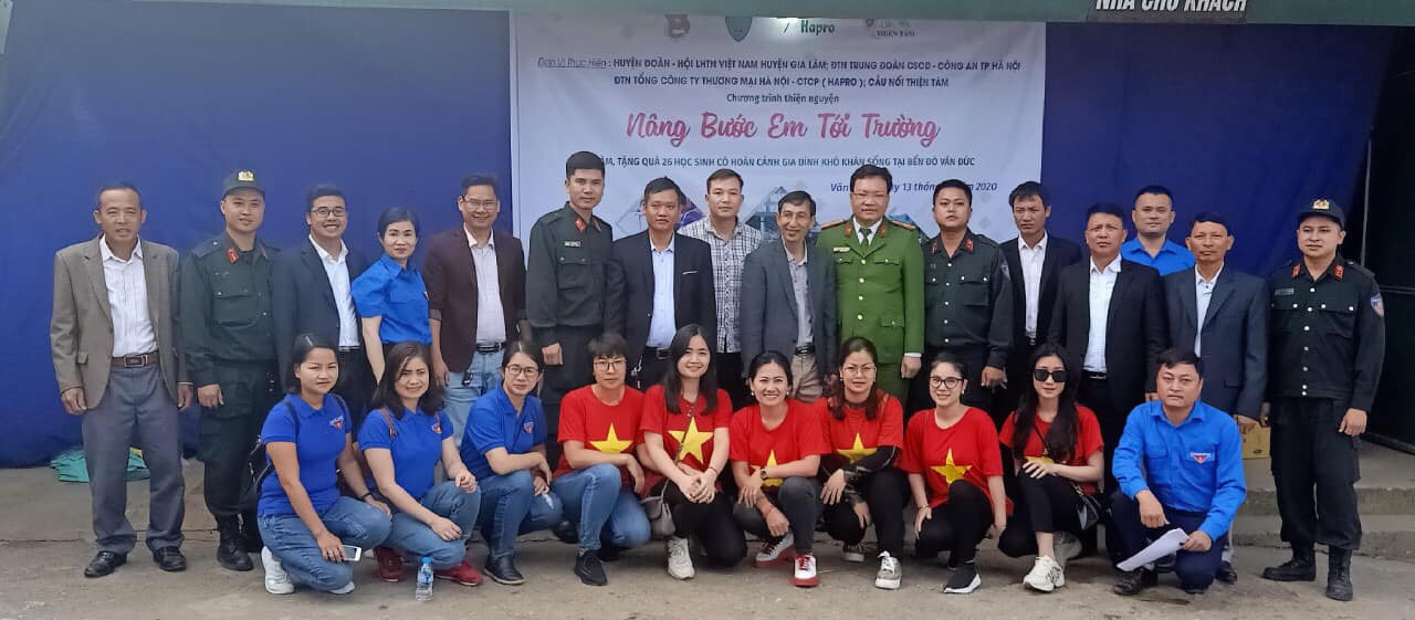 Thực hiện chương trình công tác Đoàn và phong trào thanh niên năm 2020, ngày 13/12/2020, Đoàn thanh niên Tổng công ty Thương mại Hà Nội đã phối hợp với ĐTN Phòng Cảnh sát cơ động- Công an thành phố Hà Nội và một số đơn vị bạn trên địa bàn Hà Nội; Huyện Đoàn – Hội LHTN Huyện Gia Lâm, Cầu nối Thiện Tâm tổ chức Chương trình thiện nguyện “Nâng bước chân em tới trường năm 2020” tại Bến đò Xã Văn Đức- Huyện Gia Lâm – Hà Nội.