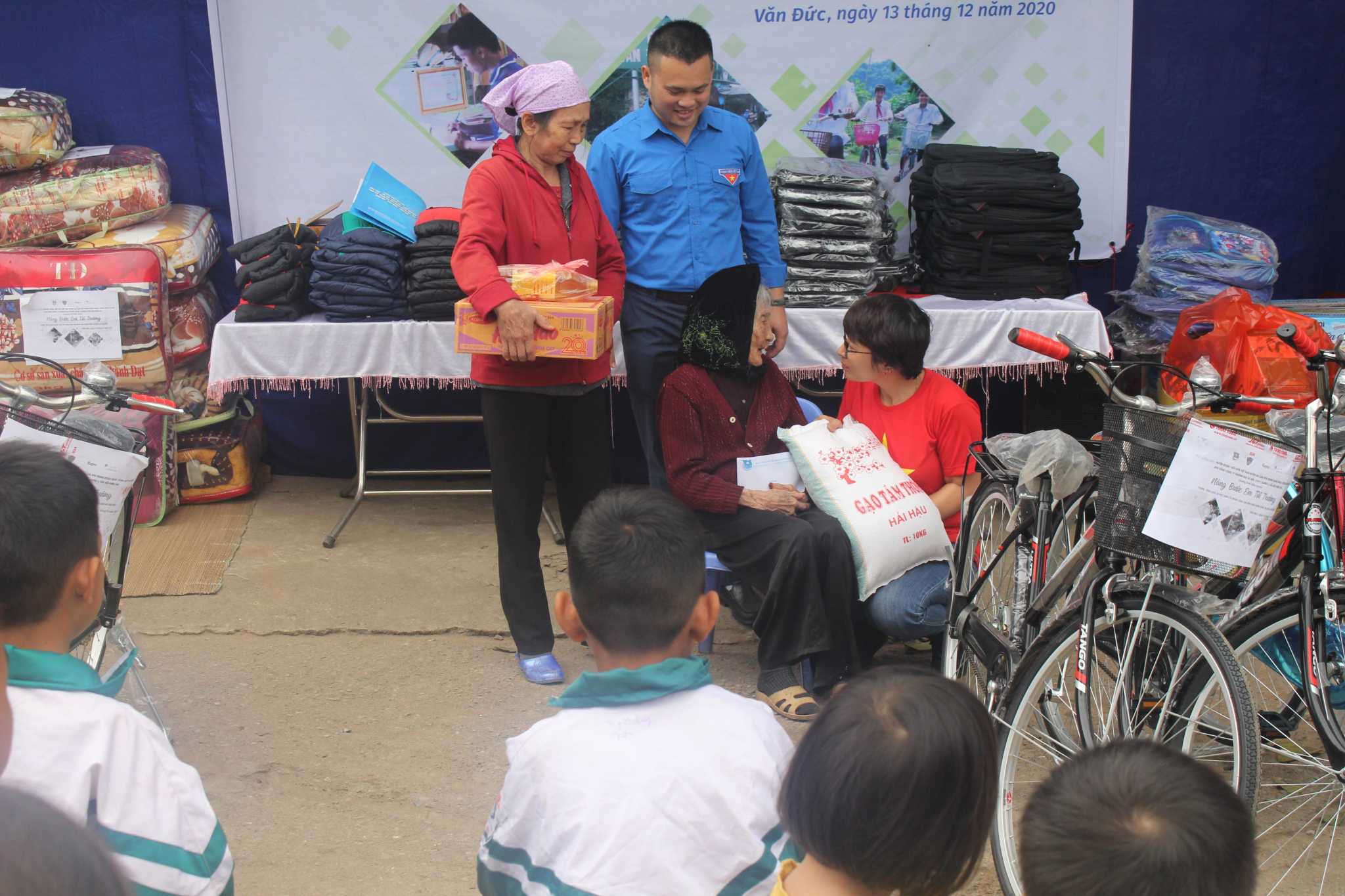 Với tâm nguyện hướng tới những gia đình có hoàn cảnh đặc biệt khó khăn và quan tâm, hỗ trợ những em học sinh vượt khó hiện đang sinh sống lênh đênh tại bến đò, Đoàn thiện nguyện đã trao tặng 02 suất quà, mỗi suất 5 triệu đồng cho 02 hộ gia đình có hoàn cảnh đặc biệt khó khăn; trao tặng 01 suất quà trị giá 3 triệu đồng cho Cụ Bà  Nguyễn Thị Thơm- hộ người già neo đơn; tặng 16 chiếc xe đạp cùng 16 thùng sữa chua uống cho 16 hộ gia đình và tặng 26 suất quà (mỗi suất gồm 300 nghìn đồng tiền mặt, 01 cặp sách, 20 quyển vở, 01 chăn mùa đông, 01 áo khoác và 01 đèn học) cho 26 trẻ em đang sinh sống tại bến đò.