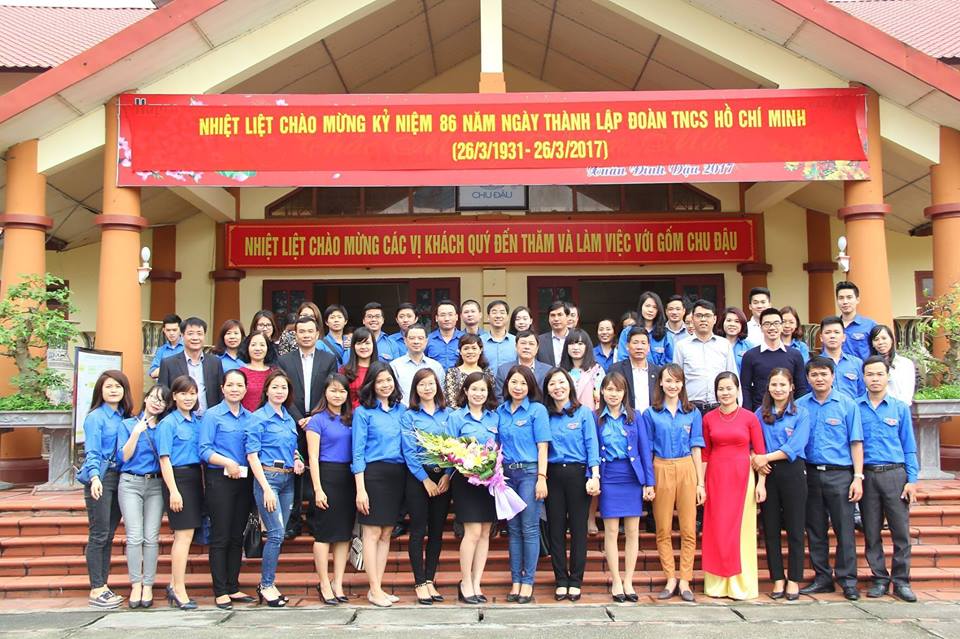 Bắt đầu buổi lễ, Đ/c Nguyễn Tiến Vượng – Phó Bí thư Đảng ủy, Phó Tổng giám đốc thường trực Tổng công ty và Đ/c Nguyễn Hữu Thức – Bí thư chi bộ, Giám đốc Công ty CP Gốm Chu Đậu đã tặng hoa chúc mừng đại diện Thành đoàn Hà Nội và Đoàn TN Tổng công ty nhân kỷ niệm 86 năm ngày thành lập Đoàn TNCS Hồ Chí Minh