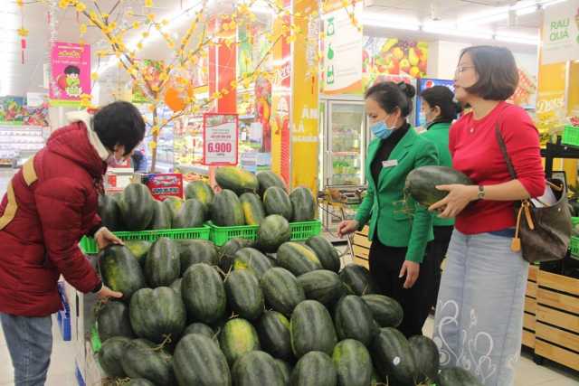 Chiều 7/2, tại siêu thị Hapro Thành Công, Tổng công ty Thương mại Hà Nội – Hapro (Thành viên Tập đoàn BRG) đã tổ chức bán hàng không lãi mặt hàng dưa hấu nhằm hỗ trợ người dân tiêu thụ nông sản.