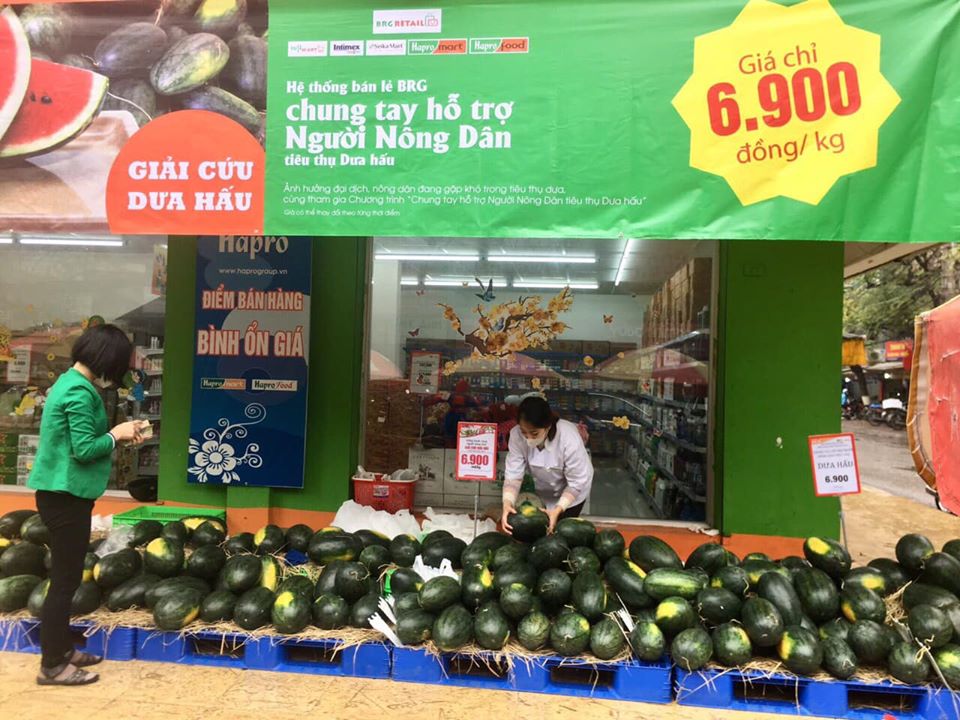 Dịch viêm phổi cấp do virus Corona (nCoV) đã khiến các tỉnh chuyên canh trồng dưa hấu và thanh long như: Bình Thuận, Gia Lai, Long An, Tiền Giang… đang gặp nhiều khó khăn về đầu ra sản phẩm. Nhằm hiện thực hóa lời kêu gọi của Bộ Công Thương, Bộ Nông nghiệp và Phát triển nông thôn, Sở Công Thương Thành phố Hà Nội trước tình hình nông sản, chủ yếu là thanh long và dưa hấu đang gặp khó khăn trong tiêu thụ do hạn chế xuất khẩu sang các nước lân cận trong điều kiện dịch bệnh nCoV có nguy cơ lây lan rộng, hệ thống bán lẻ Tập đoàn BRG đã triển khai chương trình chung tay hỗ trợ nông dân tiêu thụ dưa hấu tại hơn 20 điểm siêu thị, cửa hàng tiện ích Hapromart, Haprofood; Intimex Home&Food; Seikamart; Fujimart bắt đầu từ ngày 7/2/2020 với giá chỉ 6.900 đồng/kg và sẽ được kéo dài liên tục đến khi hàng hóa, nông sản của bà con nông dân dần đi vào ổn định. Dự kiến lượng tiêu thụ đạt trên 200 tấn.