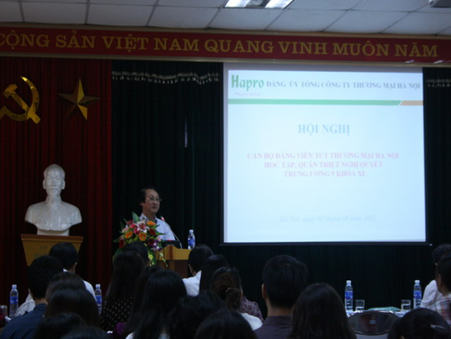 Thực hiện Kế hoạch số 62 –KH/TU ngày 25 tháng 6 năm 2012 của Thành ủy Hà Nội và Hướng dẫn số 47 –HD/BTGTU ngày 05/7/2012 của Ban Tuyên giáo Thành ủy Hà Nội về việc tổ chức học tập, quán triệt và triển khai thực hiện Nghị quyết Hội nghị lần thứ 5 BCH TW Đảng (khóa XI) và Kế hoạch số 122 –KH/ĐU ngày 11 tháng 7 năm 2012 của Đảng ủy TCT Thương mại Hà Nội v/v tổ chức phổ biến, quán triệt và thực hiện Nghị quyết Hội nghị lần thứ 5 BCH Trung ương Đảng (khóa XI);