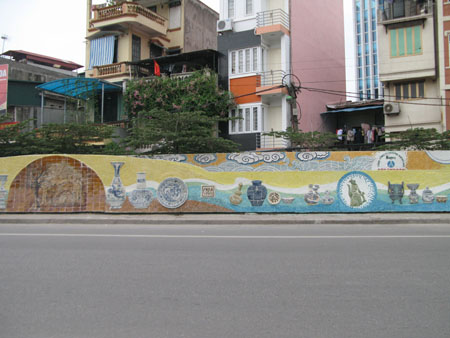 Bức tranh có chiều dài 30m, diện tích hơn 70 m2, mô phỏng lại các hoạt động của Làng nghề Gốm Chu Đậu từ những thế kỷ trước cho đến khi bị thất truyền vào thế kỷ thứ XV, đến nay đã được phục hồi và phát triển ổn định, bền vững. Bức tranh được dựng tại vị trí trang trọng trên đê Sông Hồng, phía trên khu vực Bảo tàng Lịch sử – Bác Cổ Hà Nội. Bức tranh Làng nghề Gốm cổ Chu Đậu đã góp phần tô điểm, hoành tráng thêm Con đường gốm sứ ven sông Hồng tại Hà Nội