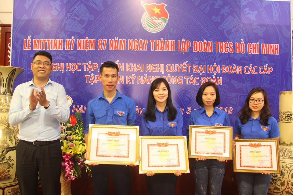 Tại buổi lễ, Đ/c Nguyễn Thị Hải Thanh đã tặng hoa chúc mừng đại diện Lãnh đạo Thành đoàn Hà Nội nhân kỷ niệm 87 năm ngày thành lập Đoàn TNCS Hồ Chí Minh.
