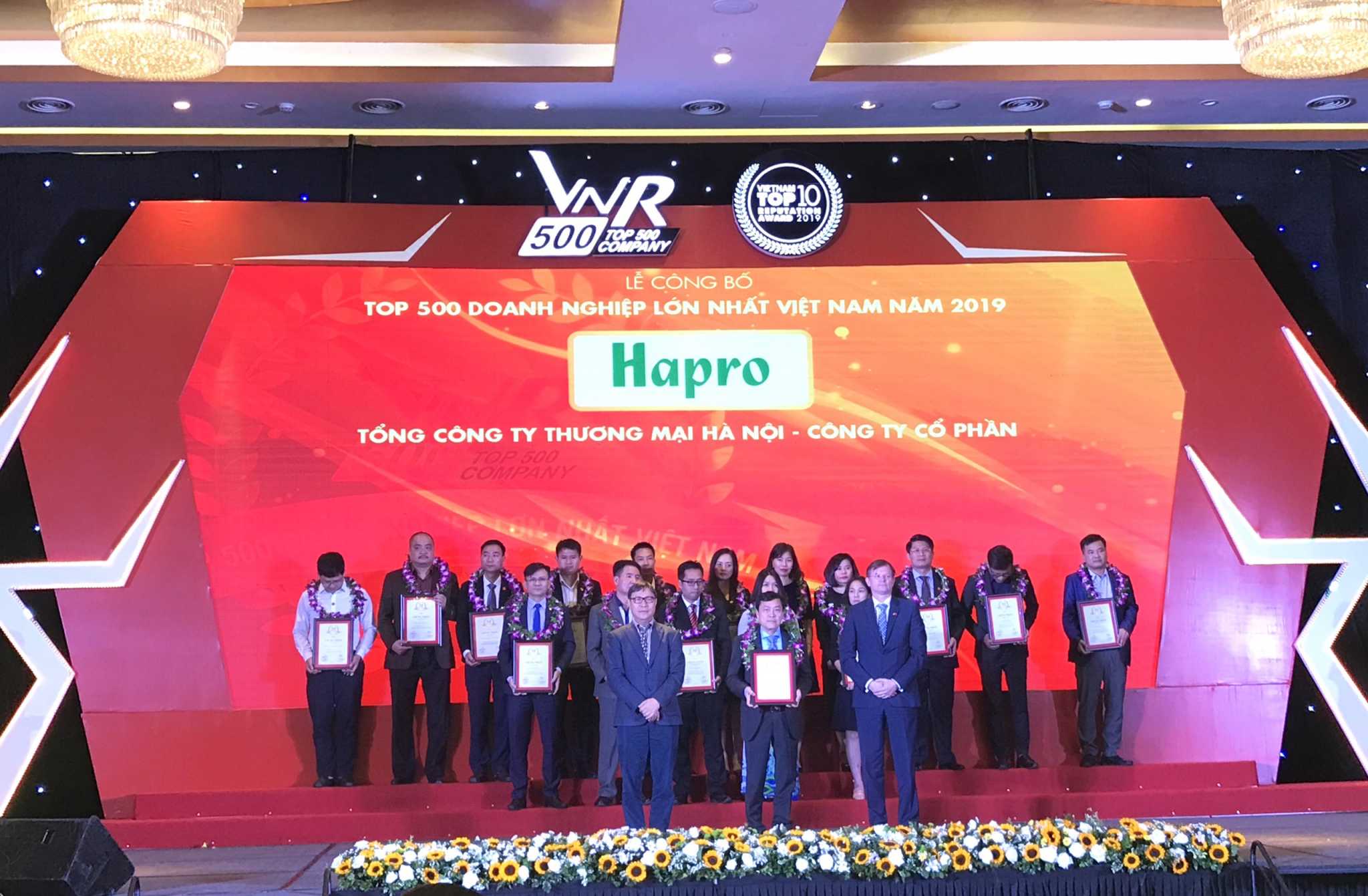 Ngày 09/01/2020 tại Khách sạn Intercontinental Landmark 72 đã diễn ra Lễ công bố Top 500 Doanh nghiệp lớn nhất Việt Nam năm 2019. Đây là năm thứ 13 liên tiếp Hapro tiếp tục được vinh danh trong bảng xếp hạng “VNR500 – Top 500 doanh nghiệp lớn nhất Việt Nam”.