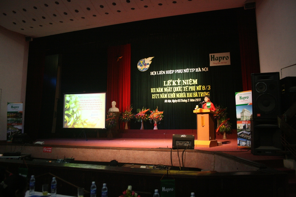 Tại buổi lễ kỷ niệm, cùng với các hoạt động của Hội liên hiệp Phụ nữ TP Hà Nội, Bà Mai Khuê Anh – Giám đốc Điều hành Tổng công ty Thương mại Hà Nội đã giới thiệu hoạt động của Hapro hưởng ứng cuộc vận động “Người Việt Nam ưu tiên dùng hàng Việt Nam”, giới thiệu chuỗi siêu thị, cửa hàng tiện ích Hapromart, chuỗi cửa hàng rau và thực phẩm an toàn Haprofood tới các đại biểu tham dự.