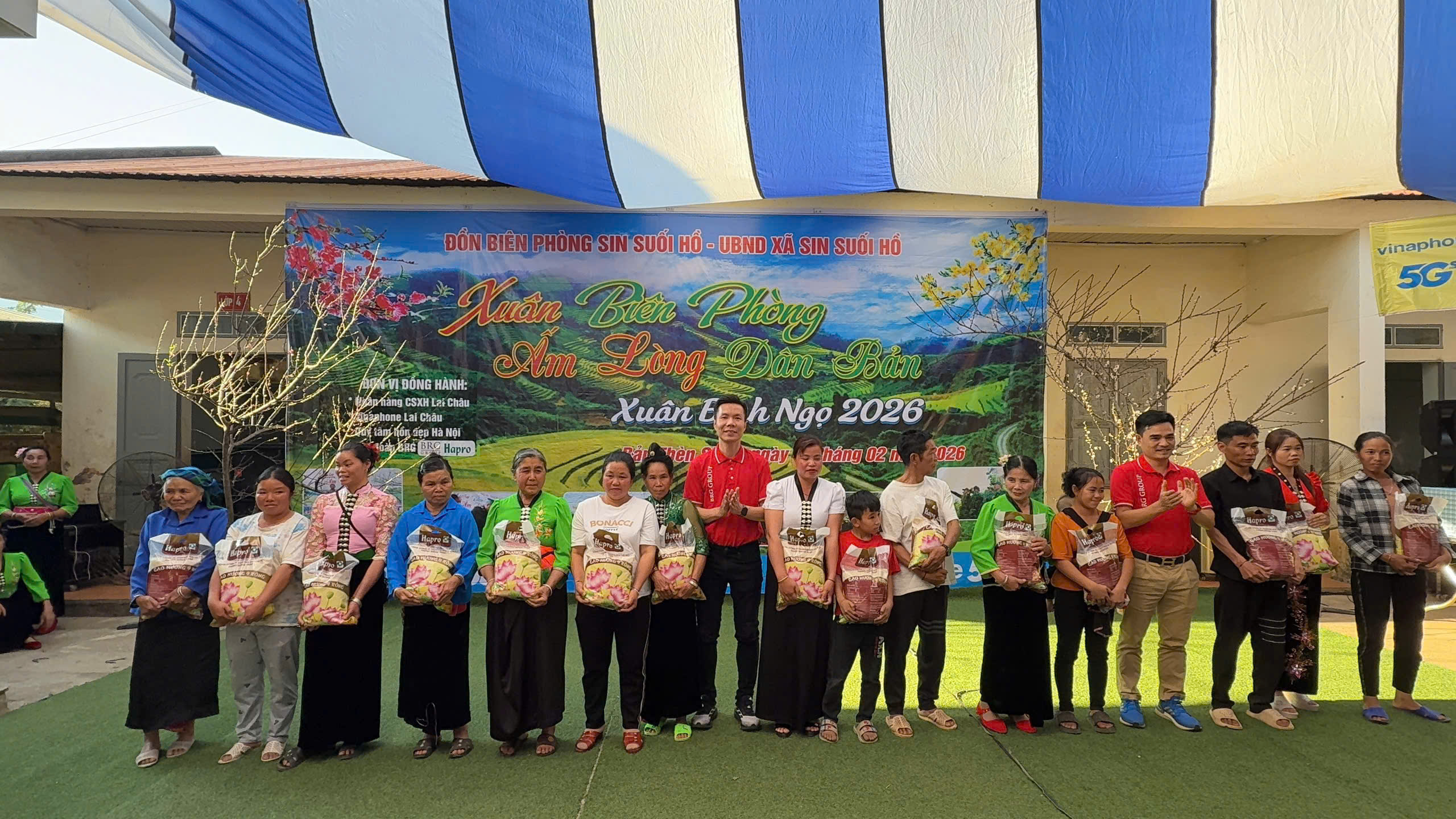 Chiều 6/2/2026, tại Bản Thèn Sin 2 (xã Sin Suối Hồ, tỉnh Lai Châu), Tổng công ty Thương mại Hà Nội Hapro, Ngân hàng Chính sách xã hội Lai Châu, Vinaphone Lai Châu, Quỹ Tâm hồn đẹp Hà Nội và các nhà tài trợ khác đã vinh dự được đồng hành cùng Đồn Biên phòng và UBND xã Sin Suối Hồ trong chương trình “Xuân Biên Phòng Ấm Tình Dân Bản” – mang hơi ấm mùa xuân đến với bà con vùng biên giới.
