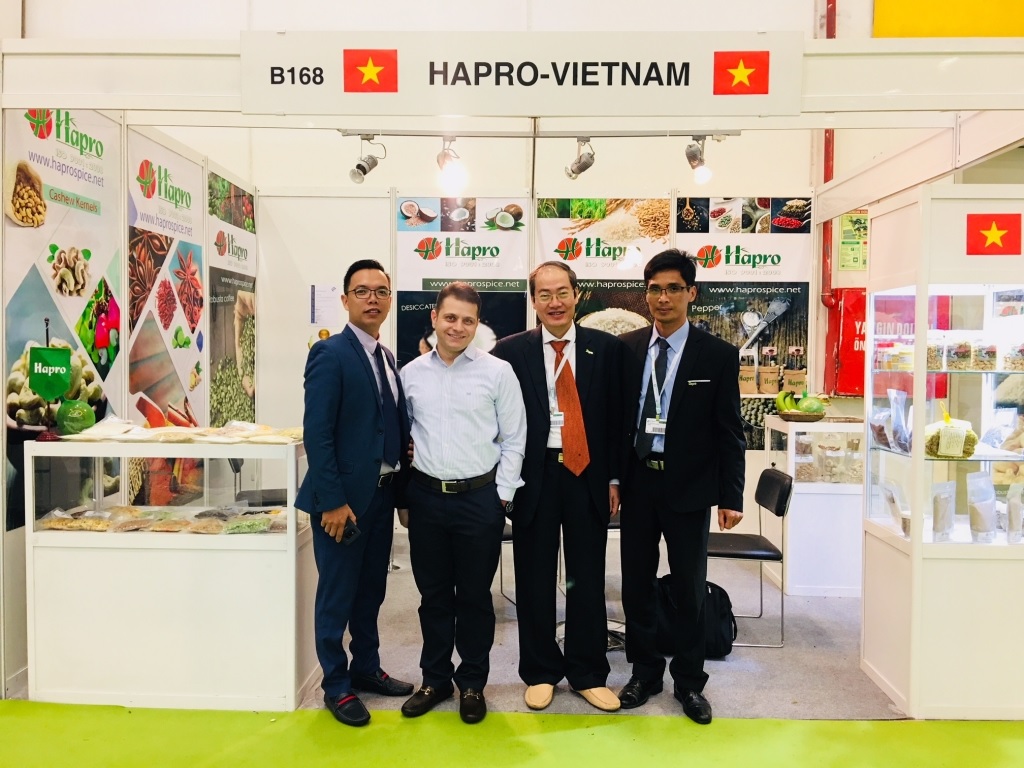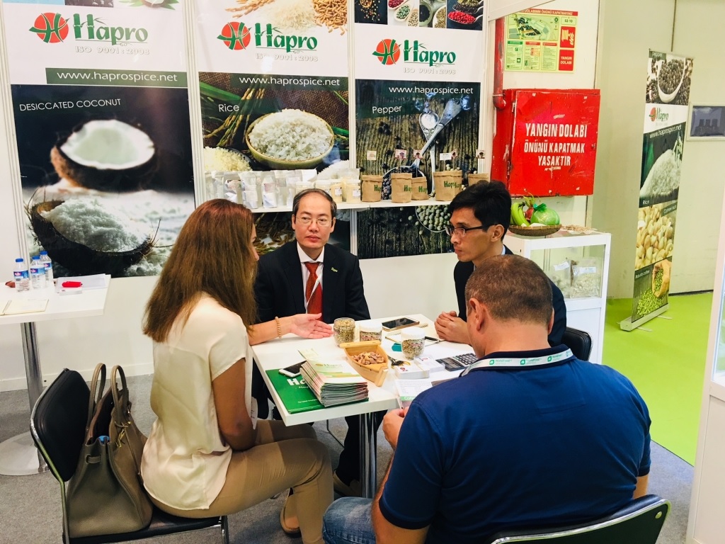 Tham dự WorldFood Istanbul 2018, Hapro mang đến các mặt hàng xuất khẩu truyền thống của Tổng công ty như gạo, hạt tiêu, hạt điều, quế, cơm dừa, các mặt hàng gia vị, trái cây sấy khô,… Tại hội chợ, gian hàng của Hapro đã tiếp gần 100 khách hàng đến tìm hiểu cơ hội hợp tác, đồng thời đoàn của Hapro cũng đã trực tiếp đi thăm nhà máy và văn phòng của các khách hàng truyền thống tại thành phố Istabul và Mercin, Thổ Nhĩ Kỳ. Kết quả tại hội chợ đã phản ánh những nỗ lực trong các hoạt động xúc tiến thương mại của Hapro khi đã ký được một số hợp đồng xuất khẩu nông sản với trị giá khoảng 1 triệu USD.