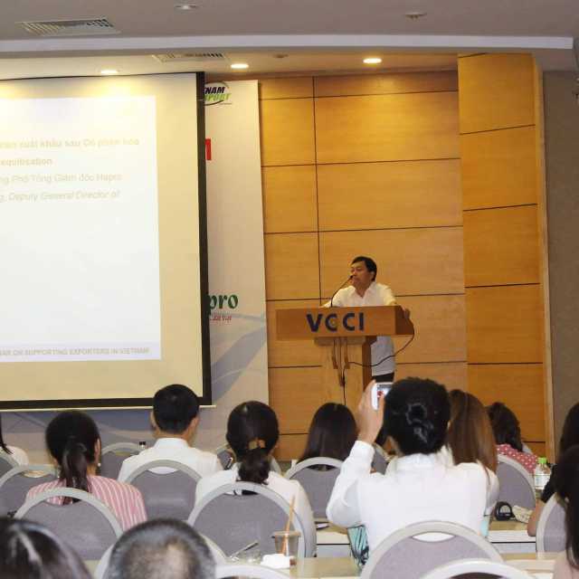 Sáng ngày 28/6/2018, VCCI (Phòng Thương mại & Công nghiệp Việt Nam) đã tổ chức Hội thảo “Hỗ trợ Doanh nghiệp Xuất khẩu Việt Nam” tại Hà Nội với sự tham gia của các bộ ngành liên quan, các đại sứ quán và các tổ chức xúc tiến thương mại quốc tế và các hiệp hội doanh nghiệp lớn trong nước.