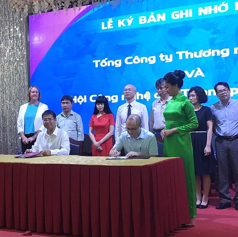 Tại đây, Ông Đinh Tiến Thành – Phó Tổng giám đốc Hapro đã đại diện Tổng công ty ký kết Bản ghi nhớ hợp tác với Hội Công nghệ cao Thành phố Hồ Chi Minh (một trong những đơn vị cung cấp giải pháp về công nghệ truy xuất nguồn gốc hàng hóa). Với thế mạnh trong lĩnh vực xuất khẩu các loại thực phẩm chế biến như: cá đóng hộp, thịt hộp, trái cây,… và các mặt hàng nông sản như: Gạo, tiêu đên, hạt điều, cà phê,chè, lạc nhân, tinh bột sắn, cao su, dừa sấy; hàng dược liệu (quế, hồi); gia vị (gừng, tỏi, ớt…) qua hội thảo, Hapro càng hiểu hơn tầm quan trọng của việc truy xuất nguồn gốc đối với hoạt động SXKD từ đó nâng cao niềm tin của khách hàng đối với sản phẩm.