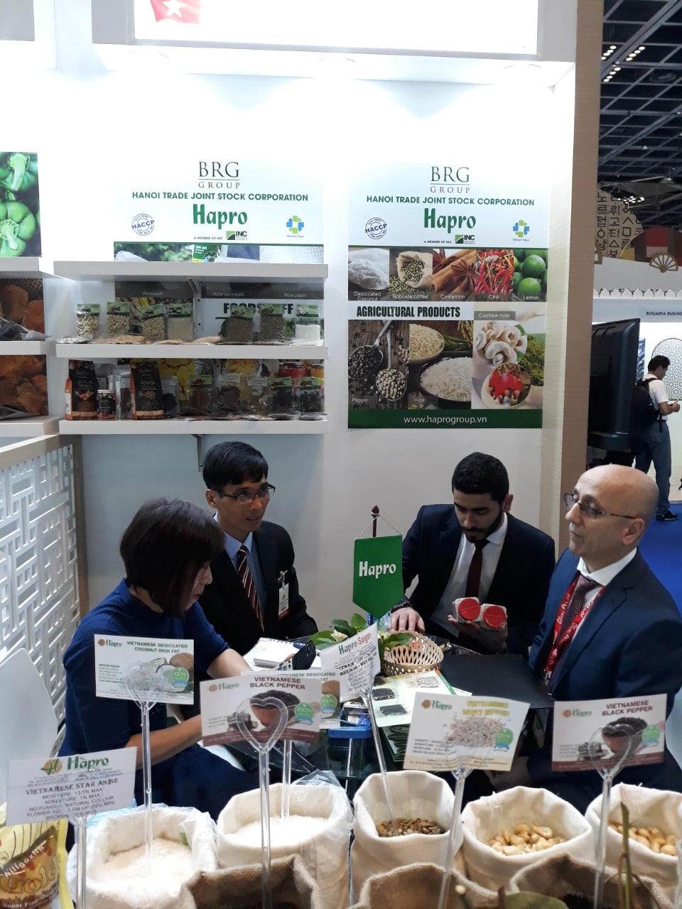 Ngoài việc tham gia trưng bày gian hàng tại Hội chợ, đoàn đã gặp gỡ khách hàng cũ, truyền thống đến thăm gian hàng của Hapro tại Hội chợ lần này. Xác định Dubai là thị trường trọng điểm xuất khẩu của Tổng công ty trong năm 2019 và những năm tiếp theo, việc tham gia Hội chợ GULFOOD DUBAI 2019 là cơ hội tốt để các Doanh nghiệp Việt Nam nói chung và Tổng công ty nói riêng quảng bá sản phẩm nông sản thực phẩm, tìm kiếm kết nối với các khách hàng khắp nơi trên thế giới thông qua cửa ngõ Dubai.