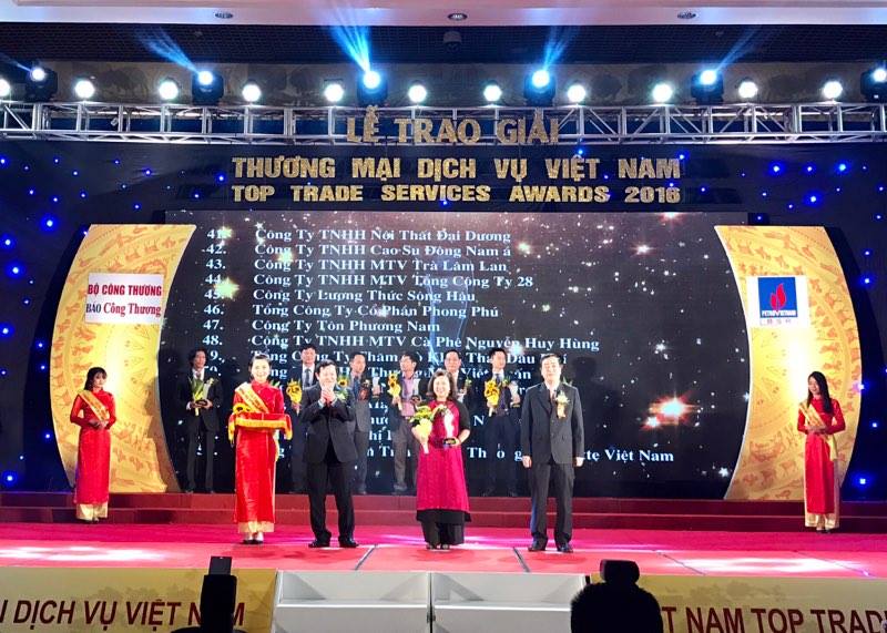 Bà Nguyễn Thị Thu Hiền - Giám đốc điều hành TCT đại diện nhận giải thưởng Vietnam Top Trade Service 2016Bà Nguyễn Thị Thu Hiền – Giám đốc điều hành TCT đại diện nhận giải thưởng Vietnam Top Trade Service 2016