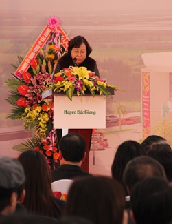Phát biểu tại Lễ khai trương, Phó Chủ tịch UBND tỉnh Nguyễn Thị Thu Hà chúc mừng Tổng Công ty Thương mại Hà Nội; Công ty Cổ phần Đầu tư phát triển hạ tầng thương mại Hà Nội – chủ đầu tư công trình. Phó Chủ tịch nhấn mạnh việc Trung tâm thương mại dịch vụ tổng hợp Hapro Bắc Giang chính thức khai trương chỉ là bước đầu, quan trọng là hiệu quả kinh doanh và đóng góp của Trung tâm đối với sự phát triển kinh tế – xã hội của tỉnh trong tương lai.