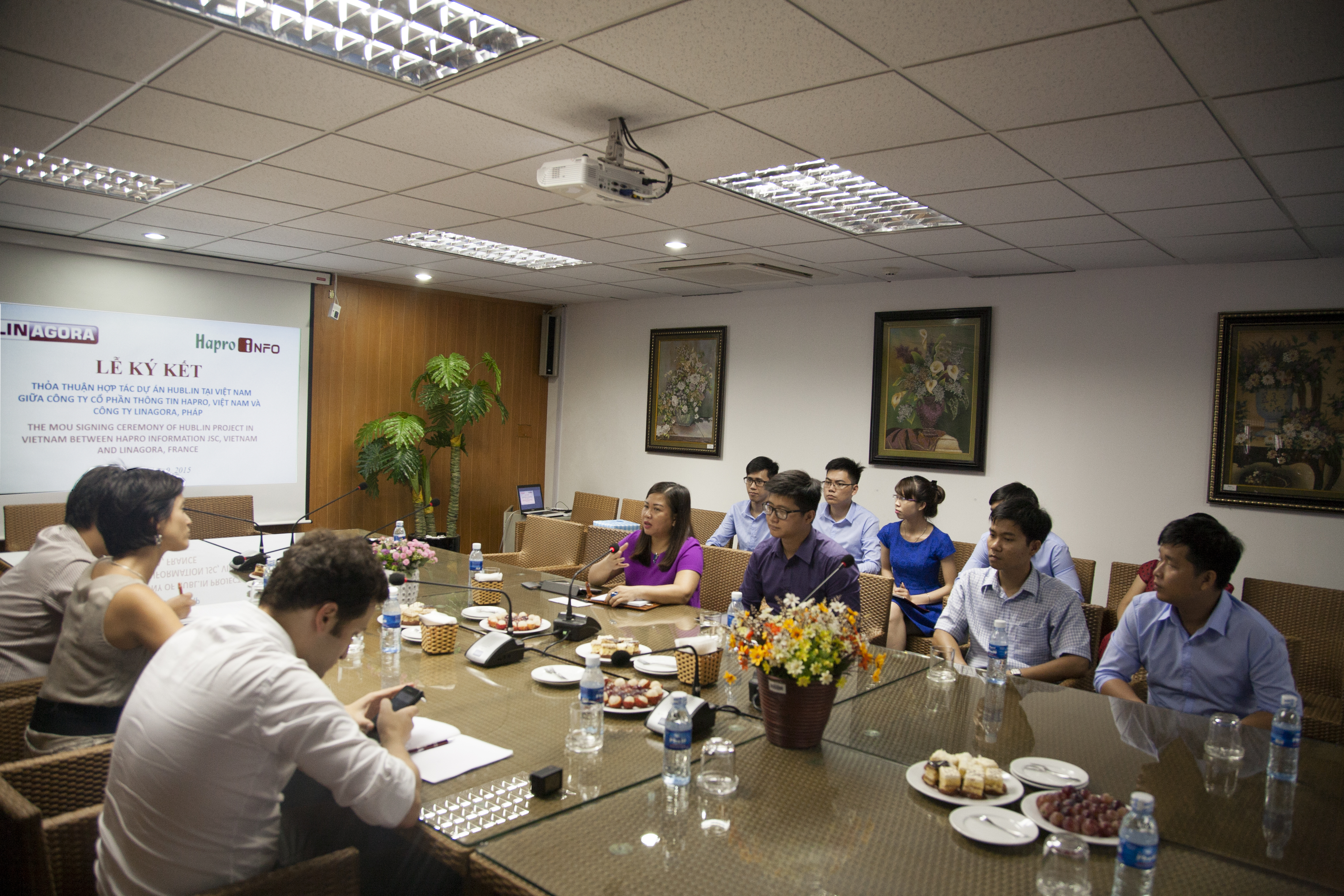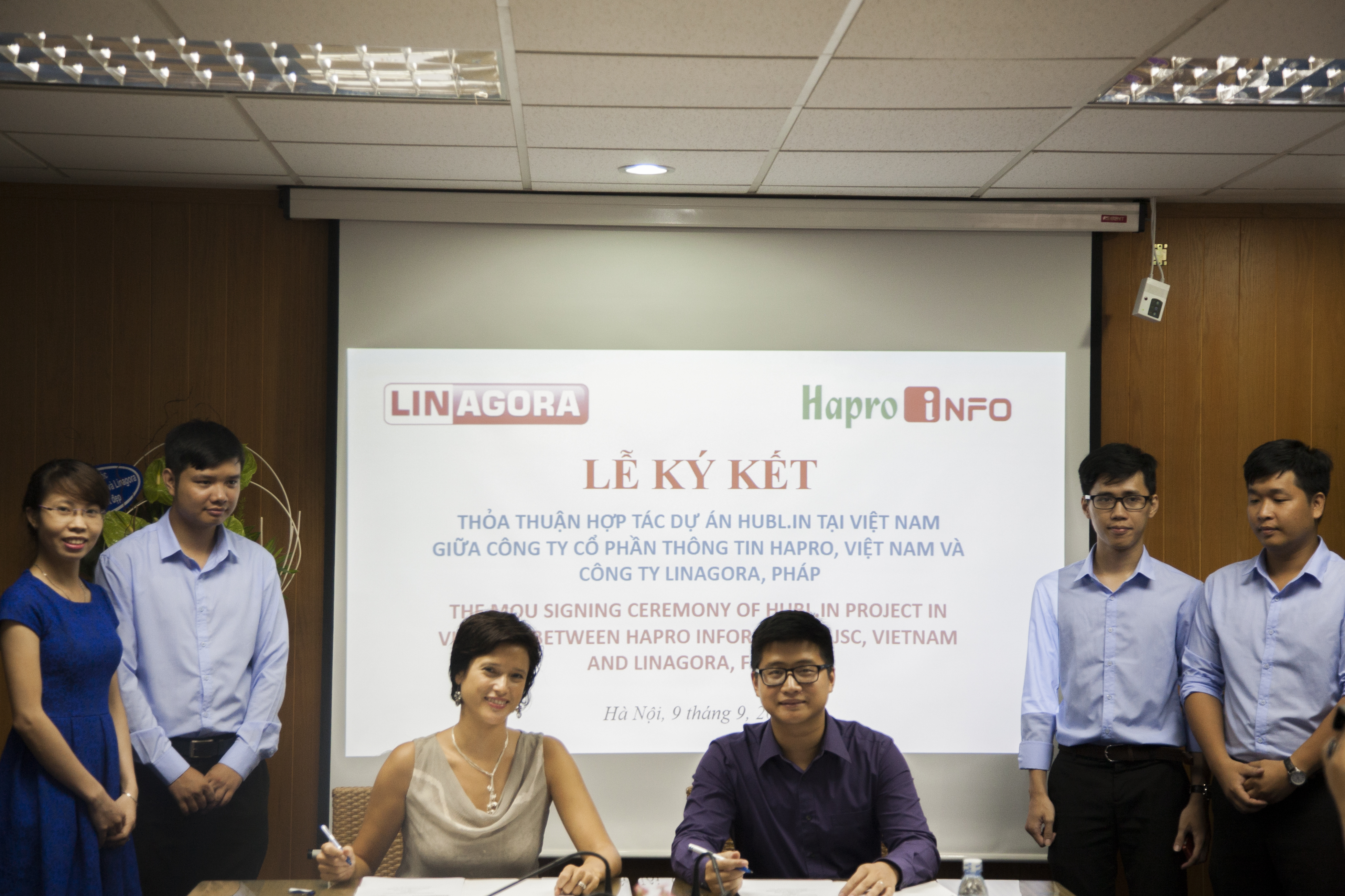 Vào chiều 9/9/2015, tại trụ sở chính ở tòa nhà Hapro đã diễn ra Lễ ký kết thỏa thuận hợp tác về dự án Hubl.in tại Việt Nam giữa công ty Cổ Phần Thông tin Hapro (Việt Nam) và công ty Linagora (Pháp).