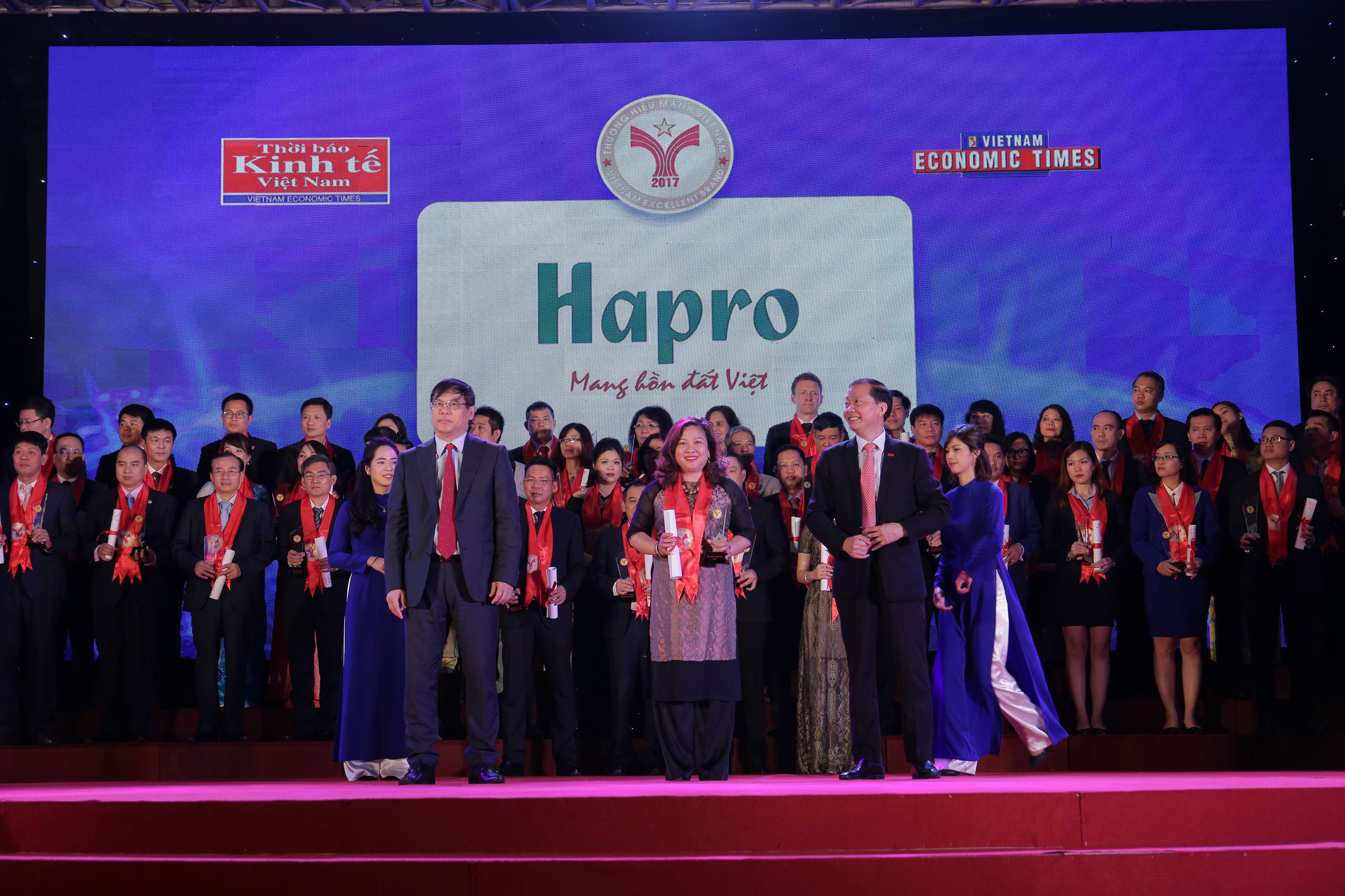 Năm 2017 là lần thứ 13 liên tiếp TCT nằm trong Top các doanh nghiệp dẫn đầu thương hiệu mạnh Việt Nam. Việc tiếp tục nằm trong Top dẫn đầu Thương hiệu mạnh Việt Nam đã khẳng định nỗ lực không ngừng trong hoạt động đầu tư xây dựng và phát triển thương hiệu của Hapro, khẳng định vị thế hàng đầu của Hapro trong nước và vững vàng hội nhập quốc tế.
