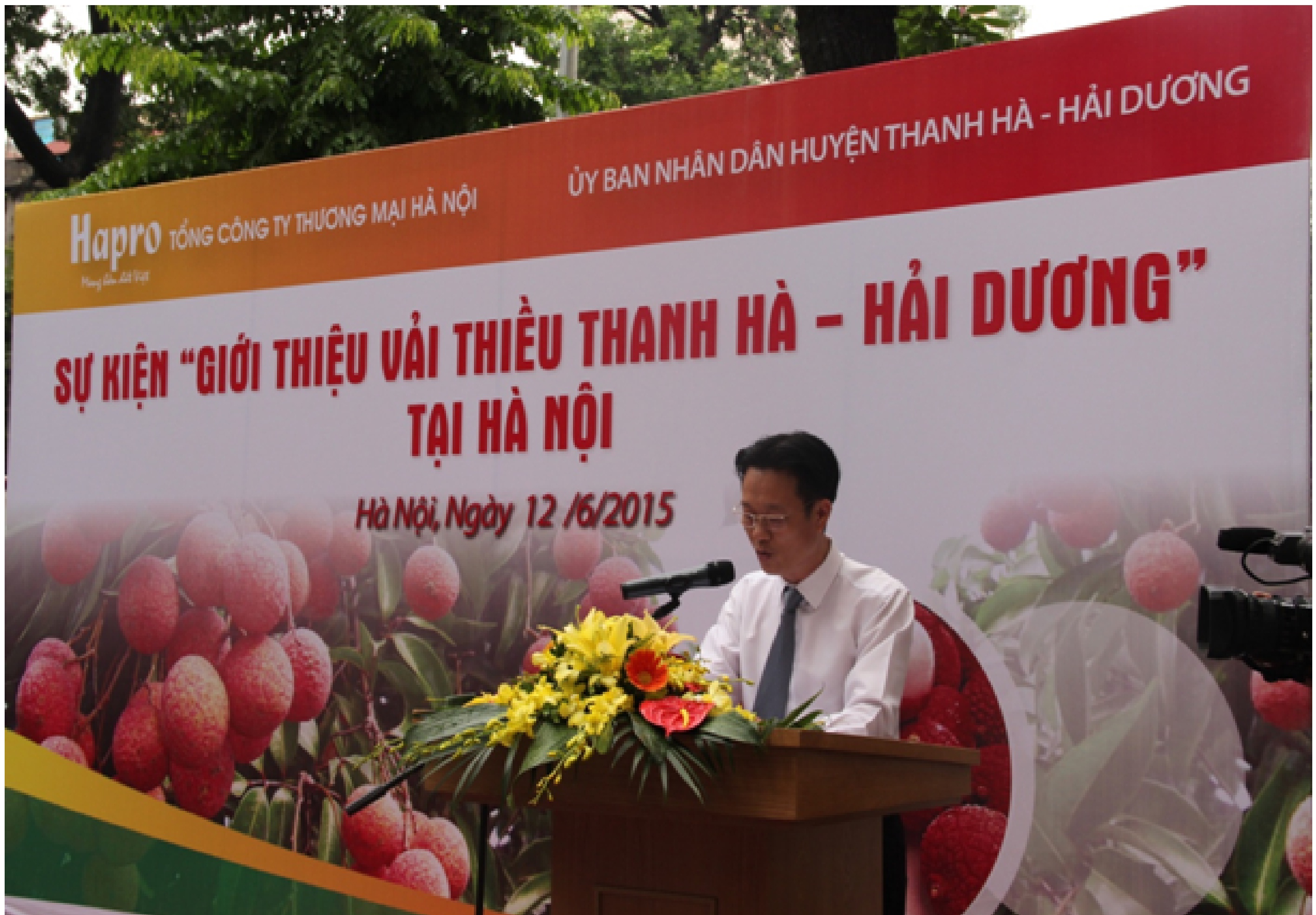 Hôm nay (12/6) Tổng công ty thương mại Hà Nội (Hapro) phối hợp với UBND tỉnh Hải Dương tổ chức chương trình “Giới thiệu vải Thiều Thanh Hà – Hải Dương tại Hà Nội” nhằm quảng bá, phân phối và tiêu thụ sản phẩm Vải thiều Thanh Hà, Hải Dương.