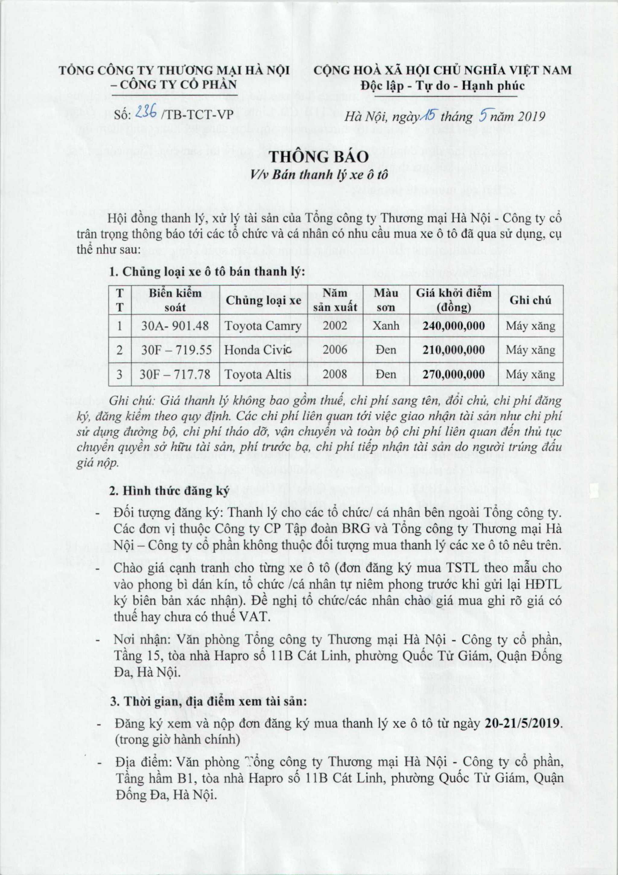 Home Tin Tức Tin Tổng Công Ty THÔNG BÁO THANH LÝ XE Ô TÔ CỦA TỔNG CÔNG TY THƯƠNG... Tin TứcTin Tổng Công Ty THÔNG BÁO THANH LÝ XE Ô TÔ CỦA TỔNG CÔNG TY THƯƠNG MẠI HÀ NỘI. By namnh - 15 Tháng Năm, 2019 11520 0 SHARE Facebook Twitter