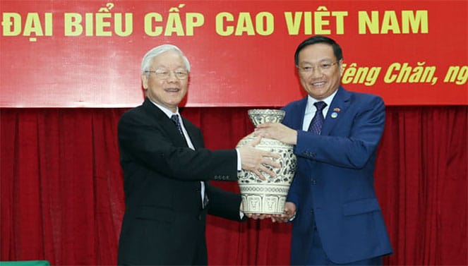 Tổng Bí thư, Chủ tịch Nước chỉ rõ, Việt Nam và Lào vốn có quan hệ sâu sắc từ lâu đời, nhân dân hai nước kề vai sát cánh, sống chết có nhau, hạt muối cắn đôi, cọng rau bẻ nửa. Trong giai đoạn phát triển mới đặt ra những yêu cầu mới đối với sự phát triển quan hệ hai nước. Chuyến thăm hữu nghị chính thức CHDCND Lào lần này là chuyến thăm đầu tiên ra nước ngoài trên cương vị Tổng Bí thư, Chủ tịch Nước, thể hiện sự coi trọng của Đảng, Nhà nước Việt Nam đối với việc vun đắp, phát triển mối quan hệ anh em, đồng chí thân thiết giữa hai nước.