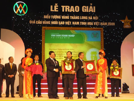 Ngày 25/01/2010, tại Nhà hát lớn TP Hà Nội. Ban Thi đua - Khen thưởng TW, Ban Tuyên giáo Trung ương, UBND TP Hà Nội, các cơ quan bảo trợ đã tổ chức lễ hội Vinh danh Doanh nghiệp hội nhập WTO và trao các giải thưởng: “Biểu tượng vàng Thăng Long – Hà Nội”, “Quả cầu vàng”, “Ngôi sao Việt Nam”, “Tinh hoa Việt Nam” cho các doanh nghiệp, doanh nhân xuất sắc trên cả nước. Đây là một trong những sự kiện nổi bật chào mừng Đại lễ kỷ niệm 1000 năm Thăng Long - Hà Nội. Đài truyền hình VTV2 trực tiếp truyền hình sự kiện này. Đến dự và trao giải có ông Trương Vĩnh Trọng - Ủy viên Bộ Chính trị, Bí thư TW Đảng, phó Thủ tướng Chính phủ, ông Nguyễn Thế Thảo, chủ tịch UBND TP Hà Nội, đại diện Liên hiệp Các Hội Khoa học và Kỹ thuật VN, Bộ Văn hóa –TT và DL, Bộ Thông tin và Truyền thông, Ban chỉ đạo Quốc gia 1000 năm Thăng Long – Hà Nội. Tổng Công ty Thương mại Hà Nội là một trong 10 doanh nghiệp được trao giải thưởng “Biểu tượng Vàng Thăng Long - Hà Nội”. Đồng thời cũng là một trong 10 doanh nghiệp đứng đầu được nhận giải thưởng Quả Cầu vàng dành cho 46 doanh nghiệp xuất sắc, đạt nhiều thành tích trên lĩnh vực Thương mại, dịch vụ năm 2009, ông Trần Mạnh Cảnh – Phó Tổng Giám đốc TCT, vinh dự lên nhận các giải thưởng trên. Các sự kiện và giải thưởng trên đã đánh dấu những điểm son mới trong quá trình 5 năm hoạt động và phát triển của Tổng Công ty Thương Mại Hà Nội kể từ ngày thành lập (08/2004). Đây là niềm vui, phấn khởi, nguồn động viên lớn đối với CB CNV trong toàn TCT trong việc hưởng ứng các phong trào thi đua lập thành tích chào mừng Đại lễ kỷ niệm 1000 năm Thăng Long – Hà Nội.Ngày 25/01/2010, tại Nhà hát lớn TP Hà Nội. Ban Thi đua – Khen th